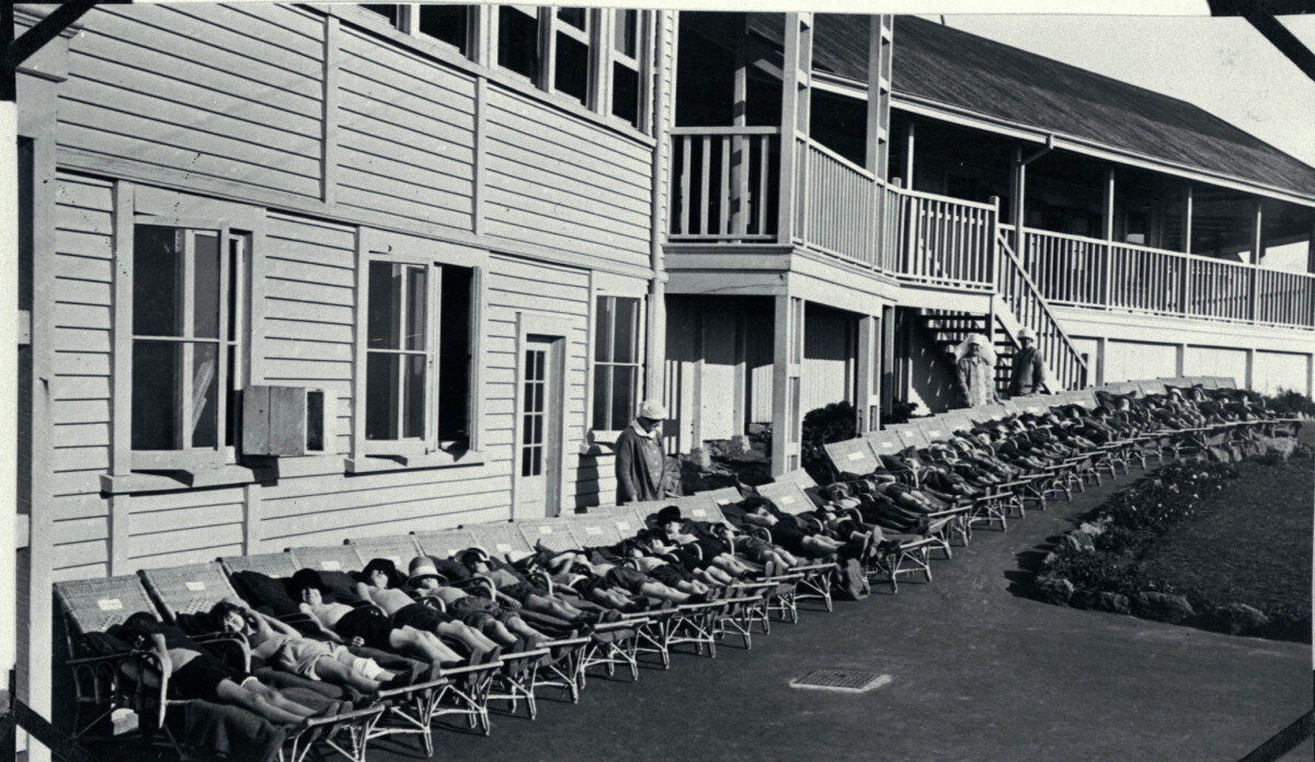 The Fresh Air Home, Cashmere Sanatorium. Part of the plan to control tuberculosis was to build up the health of children of patients in Coronation Hospital with a programme of regular rest, exercise, good food and exposure to fresh air and sunshine.