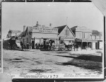 Cobb & Co. established their line of coaches in Christchurch in 1863. By 1864 their coach office was on the corner of Cashel and High Streets, facing east on the Triangle. The coach driver is thought to be Joseph McFarlane (1849?-1885). In High Street to the right of their depot are Royse, Stead & Co. (William Royse and George G. Stead), grain merchants and the Simpson depot (Bernard Simpson, tobacconist and fancy goods). The music warehouse of Spensley & Co can be seen on the left, in Cashel Street.