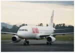 View shows aeroplanes (Air New Zealand and Qantas) at Christchurch airport.