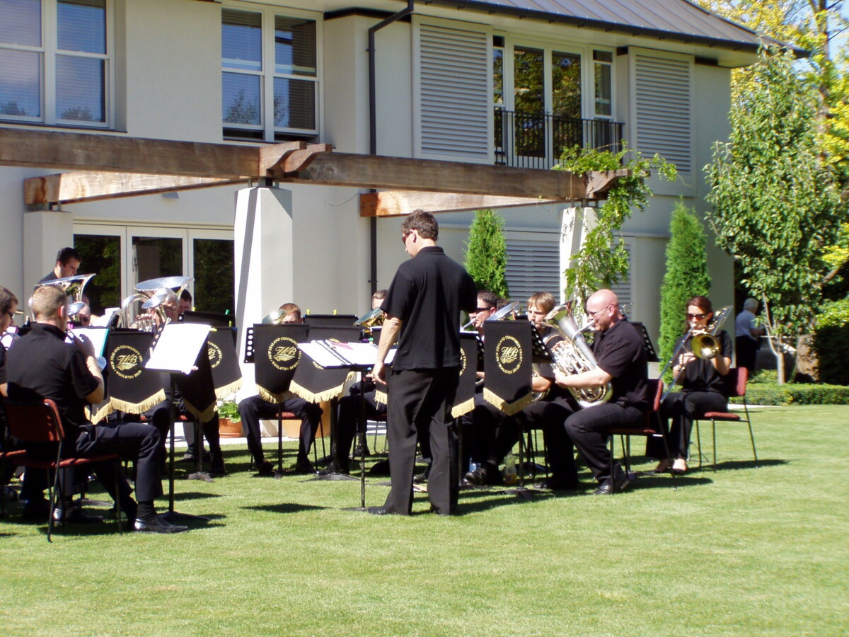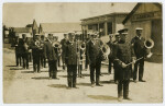 A brass band, possibly Sumner Brass Band, playing in gardens.