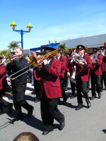 Photograph taken in Colombo Street, South of the Square, 6 December 2009. Features a brass band.