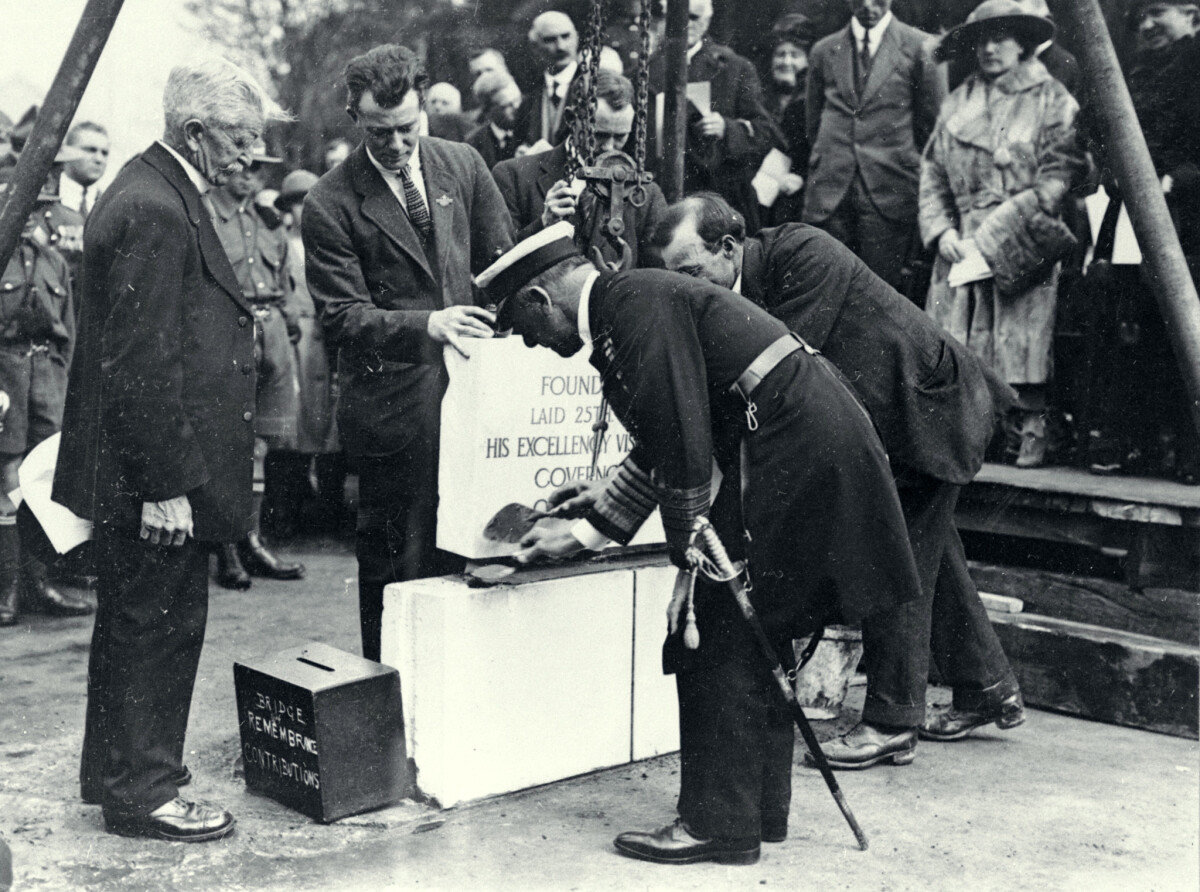 The foundation stone for the Bridge of Remembrance was laid on Anzac Day in 1923 by Governor-General Viscount Jellicoe as part of a foundation stone ceremony.