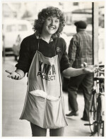 Helen DeJong selling mystery envelopes to raise money for the YMCA.