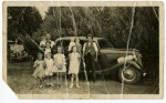 My nan and grandad with my aunties and my mum at a picnic. Names on reverse of photo: great grandad Bailey, grandad and nana Bailey, aunty Doreen (6?),aunty Jan (5?), mum B. J. Lilly (4?), aunty Annette, uncle Allan as babies, cousin Natalie (8?), cousin Hazel (9?). Great grandad's car and Uncle Stan's car.