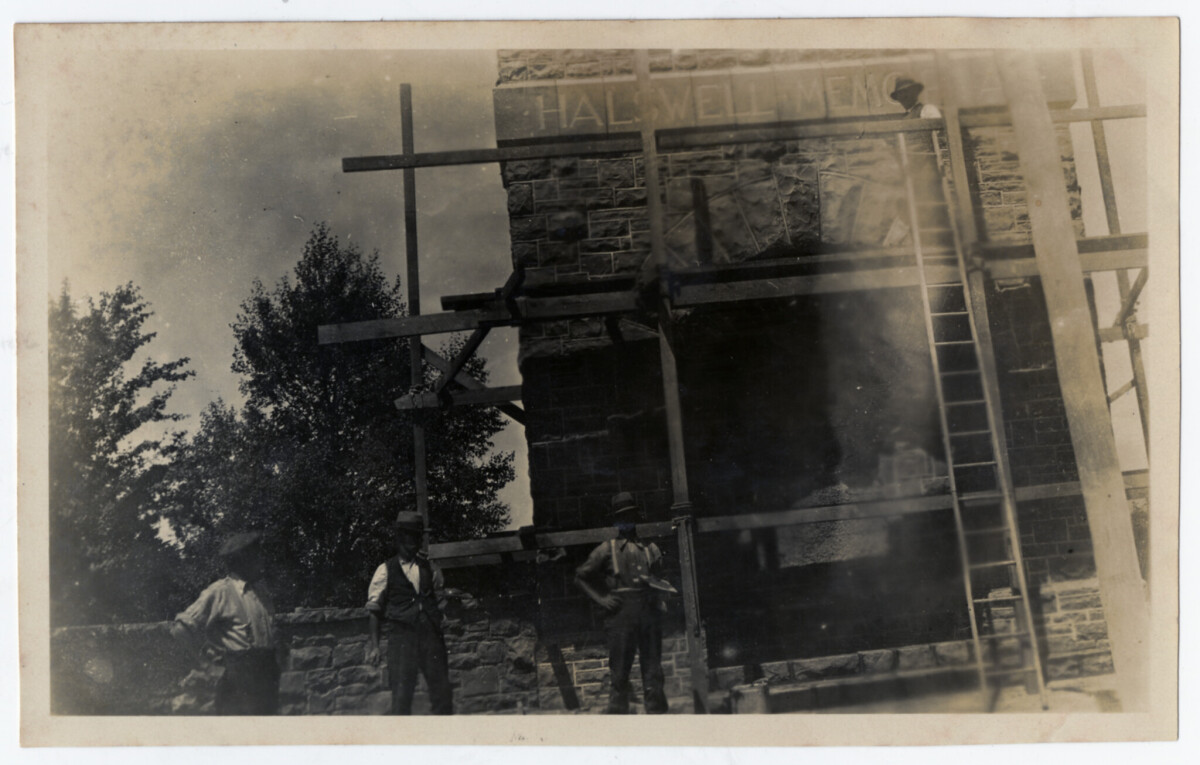 Halswell Memorial Gates under construction by W. Winsor, builder, of Spreydon, 1923