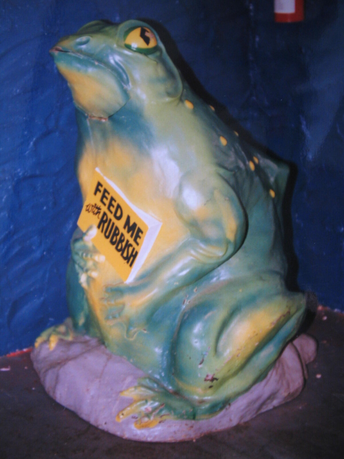 Frog rubbish bin on Hays Roof playground - you open his mouth and threw your rubbish inside.