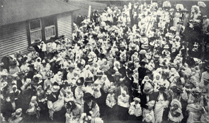 Mothers and babies gathered outside St. Helen's Hospital.