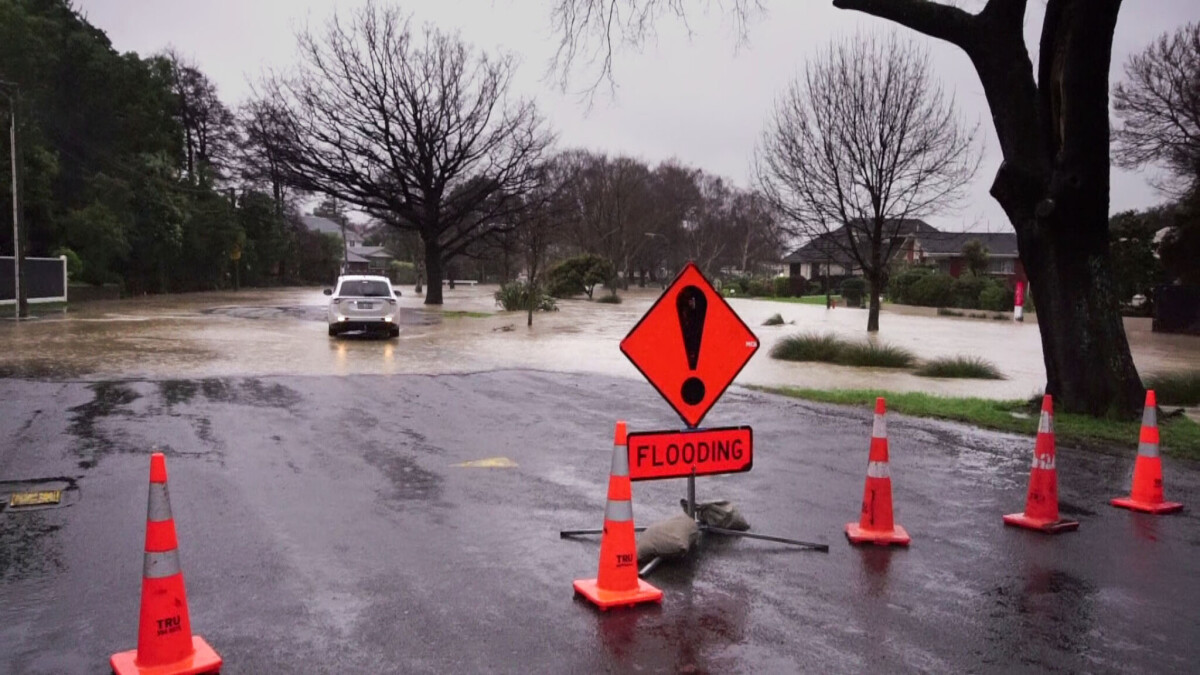 Heathcote river in flood on Ashgrove Terrace, 22 July 2017.