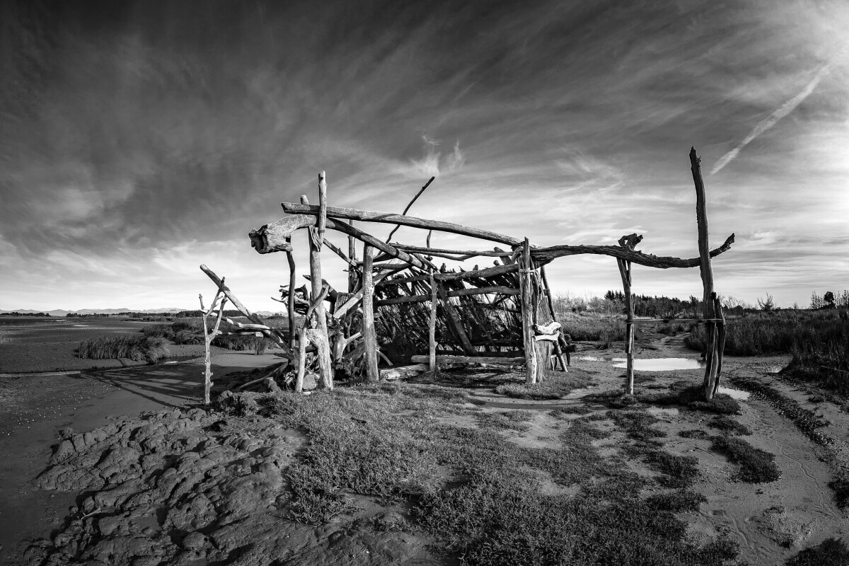Whitebaiter surveys his nets south side of the Waimakariri ...