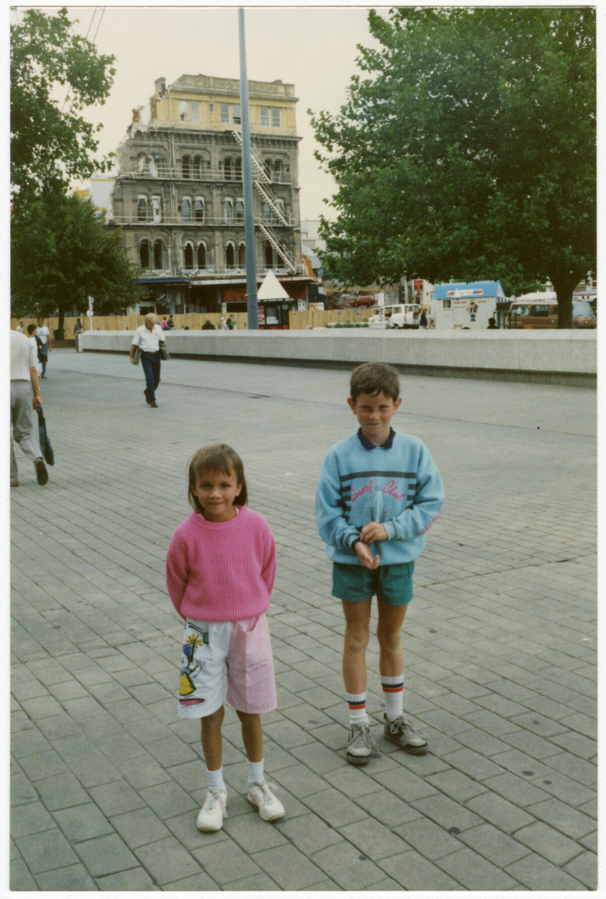 Louise Carpenter and Brett Carpenter Christmas school holidays - central city outing. The United Service Hotel is being demolished in the background