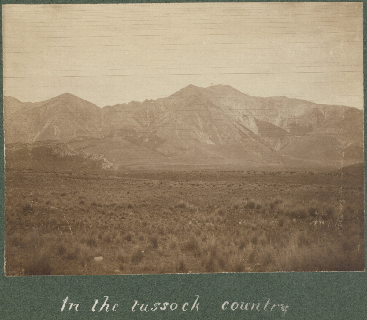 In the tussock country. Taken by Frederick Charles Brockett when on a bicycle trip with friends From Christchurch over Arthurs Pass to Greymouth.