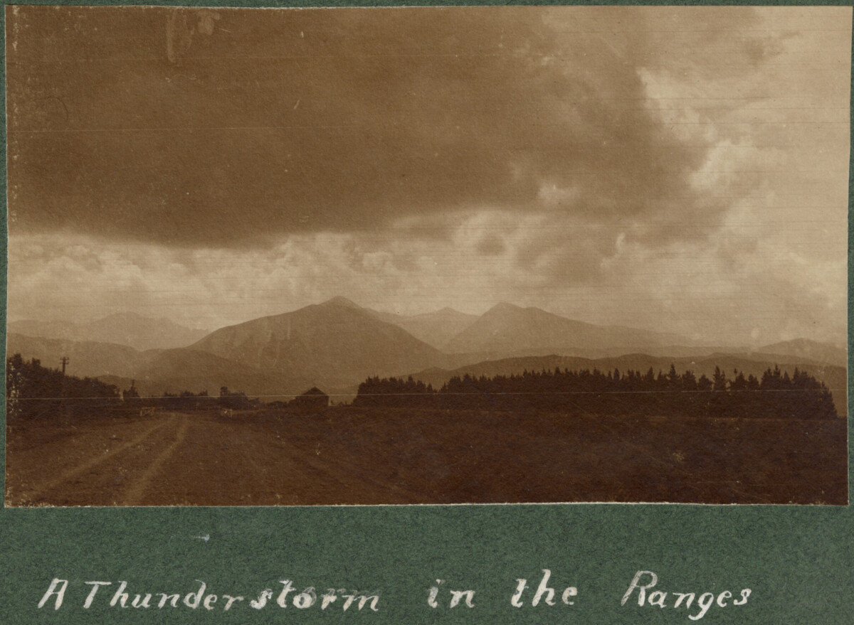 A thunderstorm in the Ranges. Taken by Frederick Charles Brockett when on a bicycle trip with friends From Christchurch over Arthurs Pass to Greymouth.