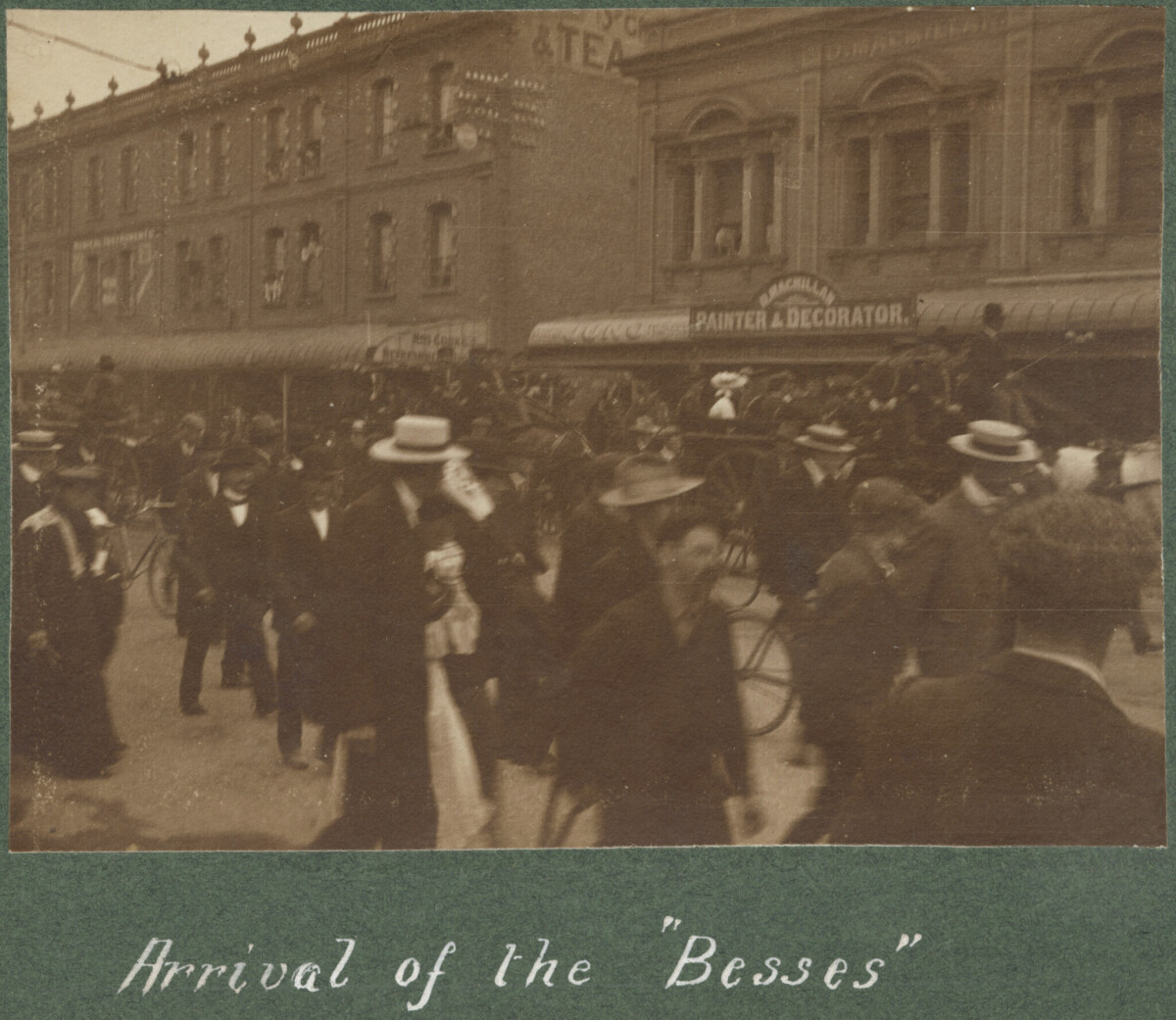 Arrival of the "Besses" The Besses o'th' Barn band, an English Brass Band, were photographed in Christchurch 23 January 1907.