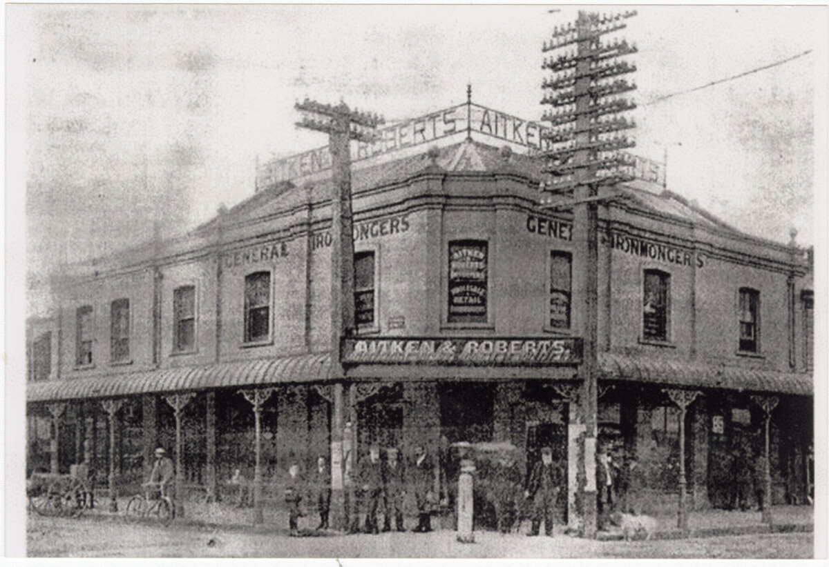 Aitken & Roberts. Picture of business (ironmongers) Lichfield Street Christchurch. Who also was the owner of Maesbury in New Brighton Road.
