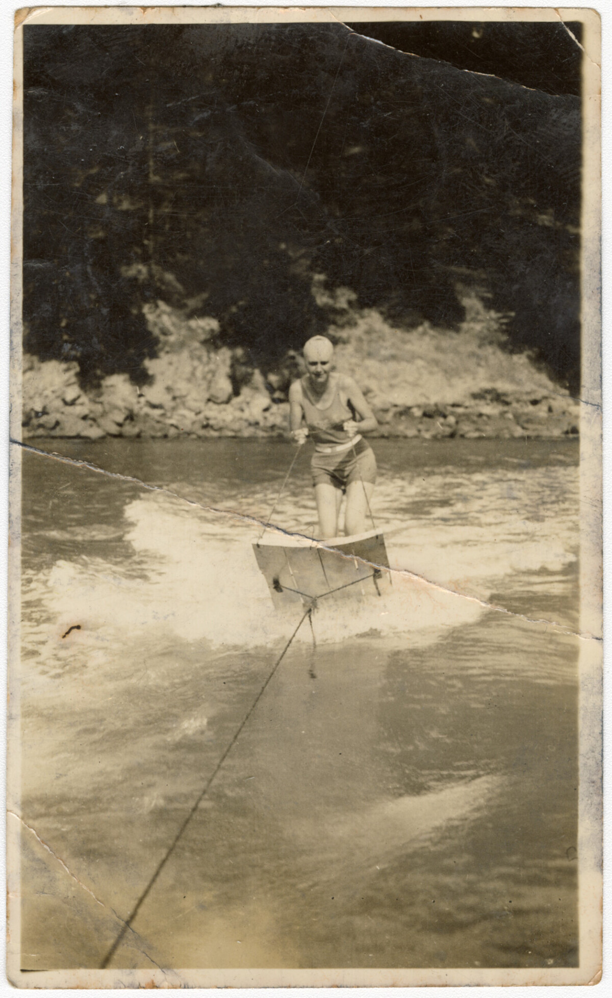 Photo shows my mother Phyllis Leslie waterskiing at Taylors Mistake. The photo was probably taken by her boyfriend, Irvine Arrow, from the boat "Himi"
