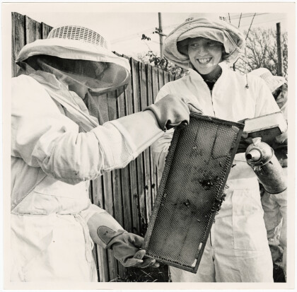 Diane Heenan assists Michelle Bain in the bee dislodging ...