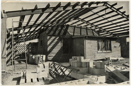 View during the building of warehouse over an old house on ...