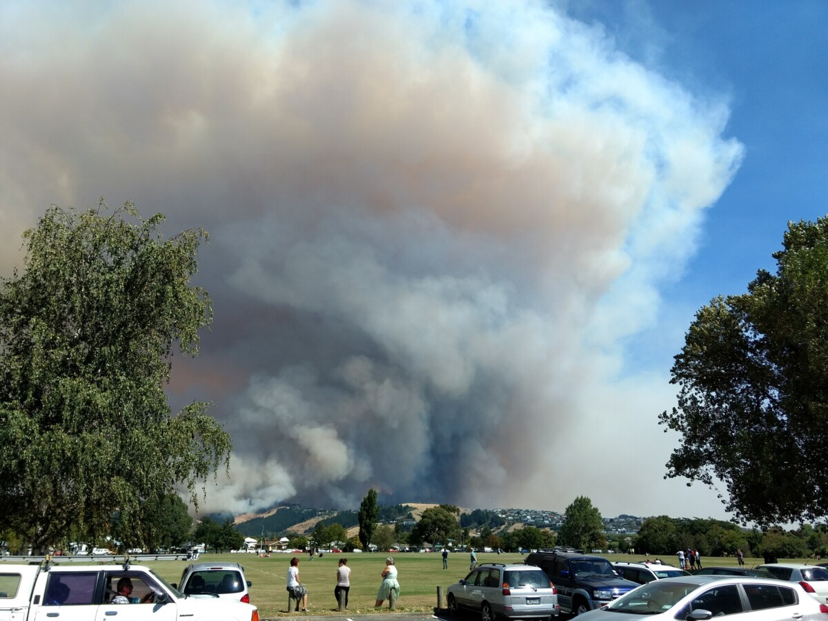 The view of the Port hills fires on Wednesday 15th February 2017. Pioneer recreation and sport centre is behind me and Centennial park is in the foreground.