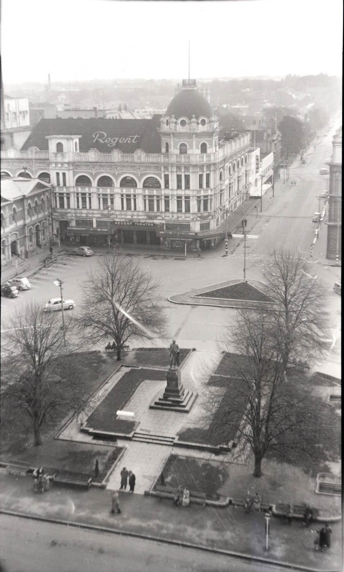 Looking down on the Square, Negative - Looking down on the Square. Post Office Building, Regent Theatre