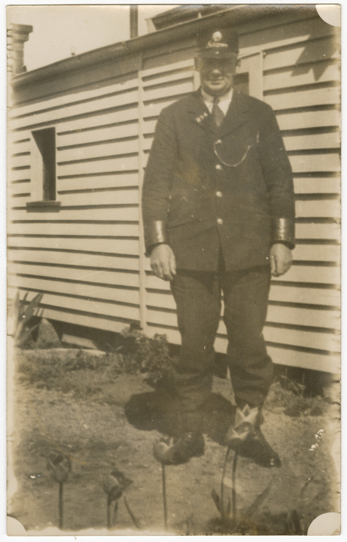 "Bertie Sutton in his tram drivers uniform. Taken at 11 Butler Street Opawa (now 21)." - Contributor's note