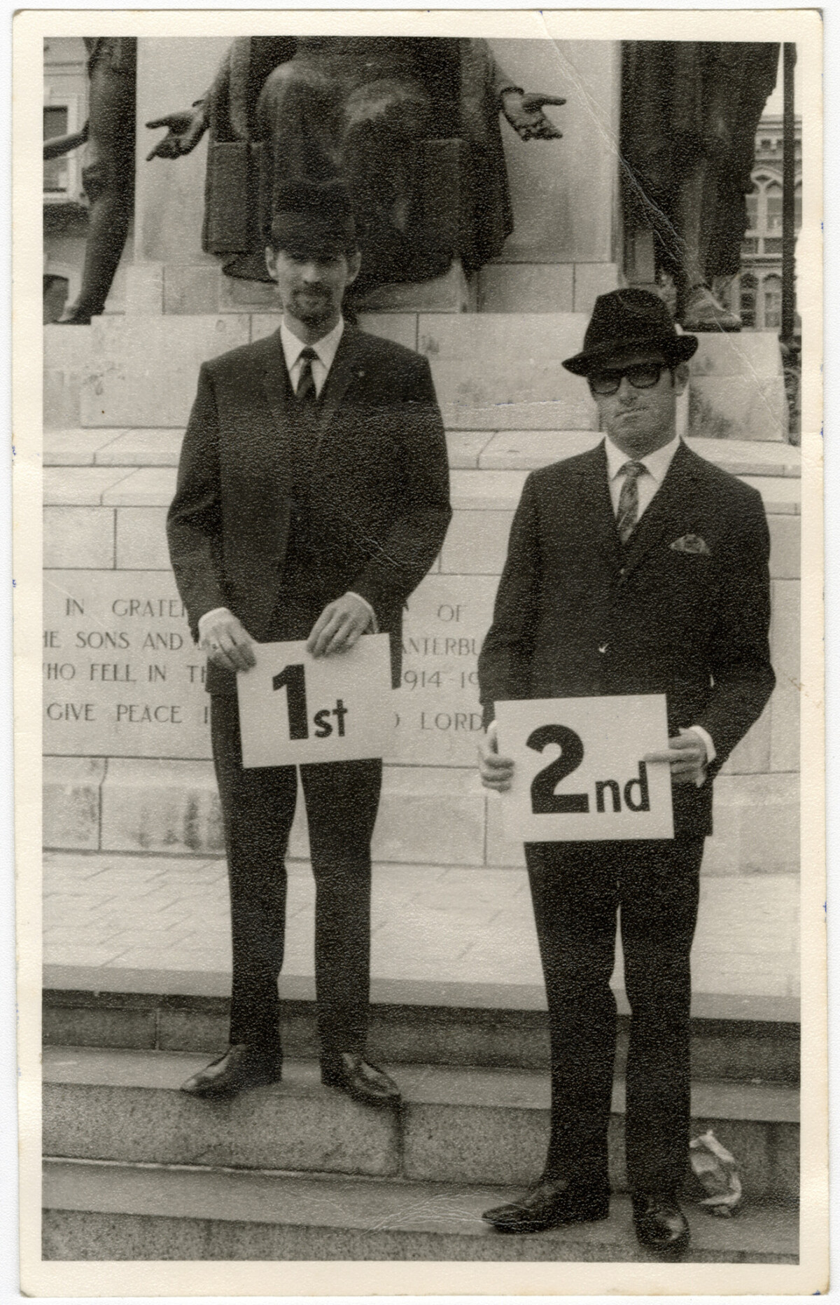 Fin and Arthur wearing uniform in Cathedral Square.