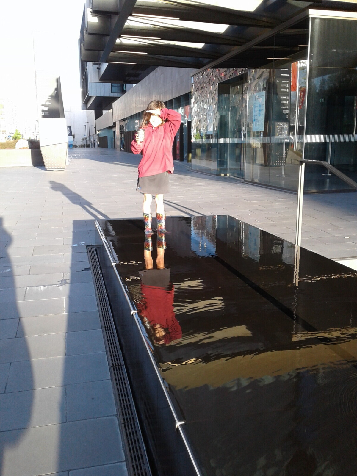 "Entitled "Reflections", 7yr old Merina Kamana's iconic Kiwi gumboots are so versatile when exploring central city water features at Christchurch District Court (24 Oct 2019)." - Contributor's note