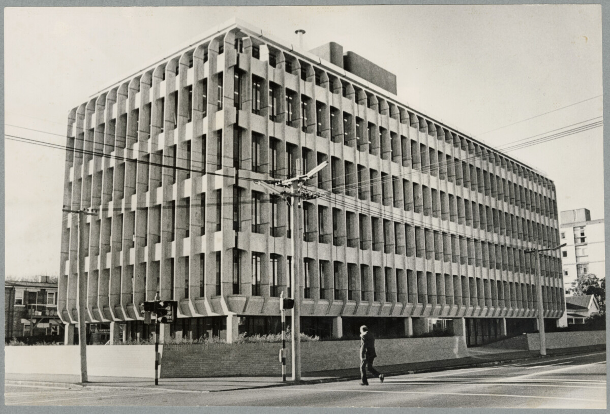 The Ministry of Transport building on the corner of Montreal Street and Cashel Street.