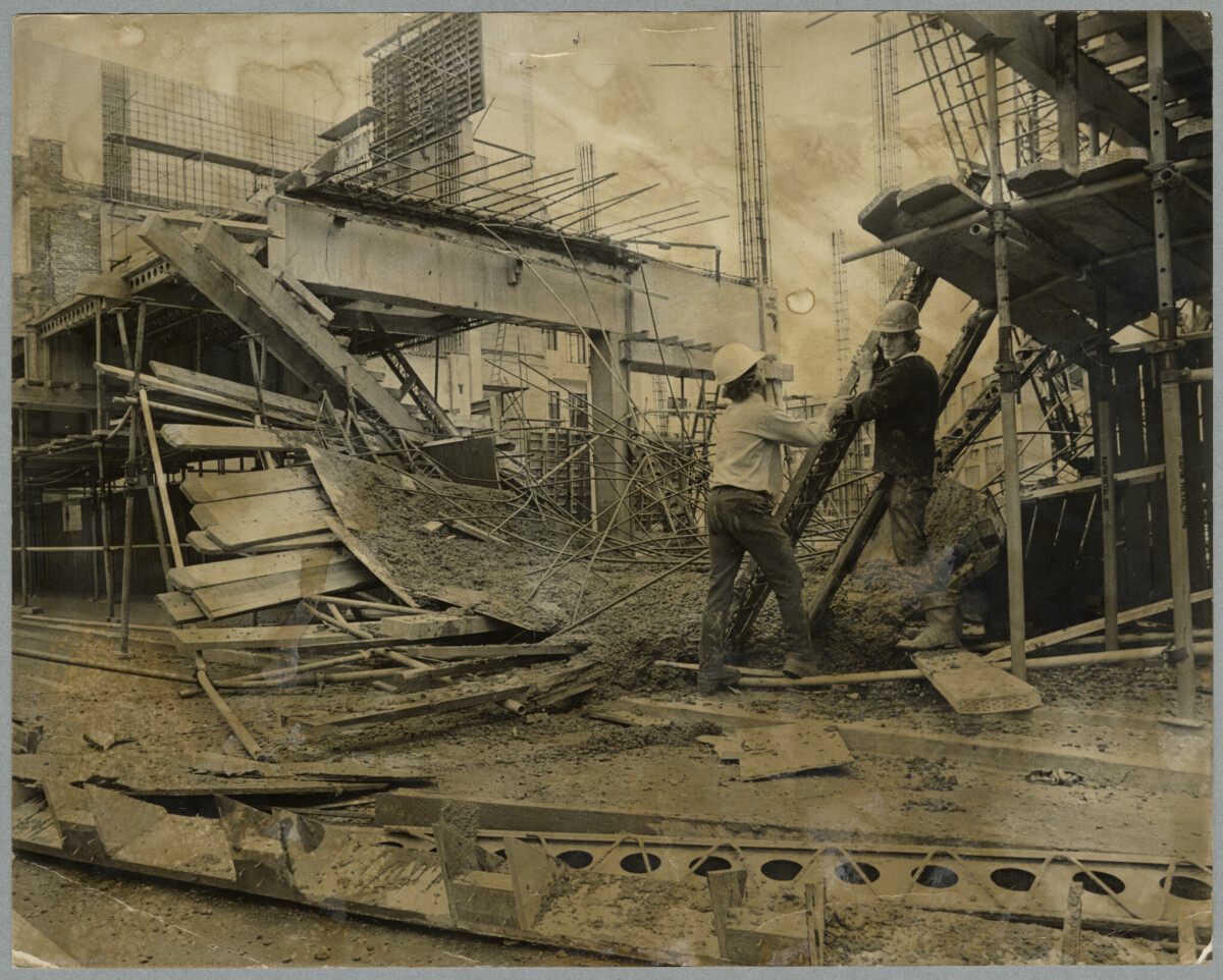 Collapsed veranda on the construction site of the Ramada Inn.