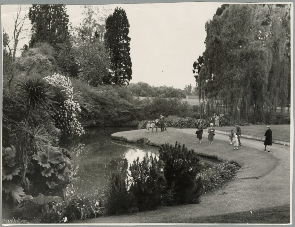 Visitors walk along the bank of the Avon River at Ilam Gardens.