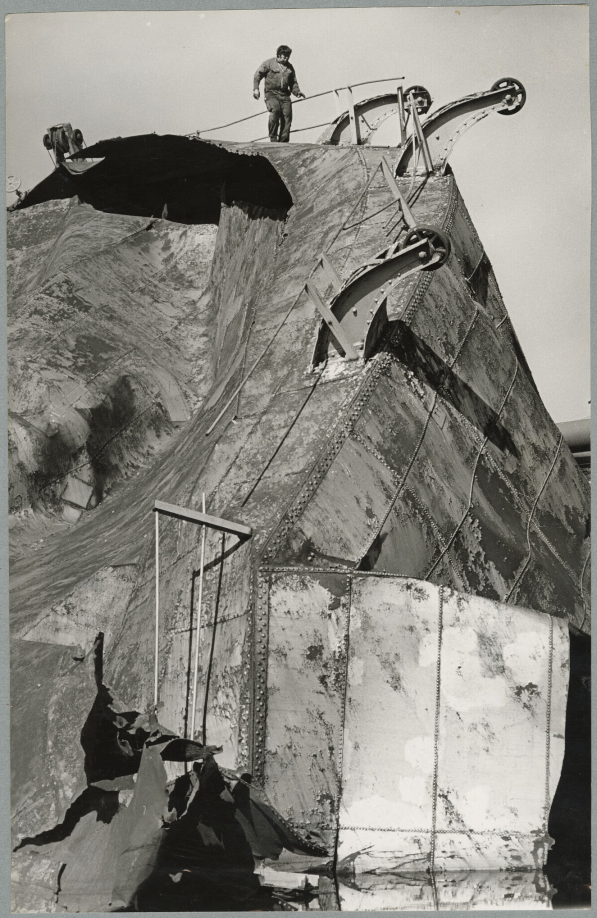 Bill Muston atop of the remains of gasholder no. 6 which is being cut up for scrap.
