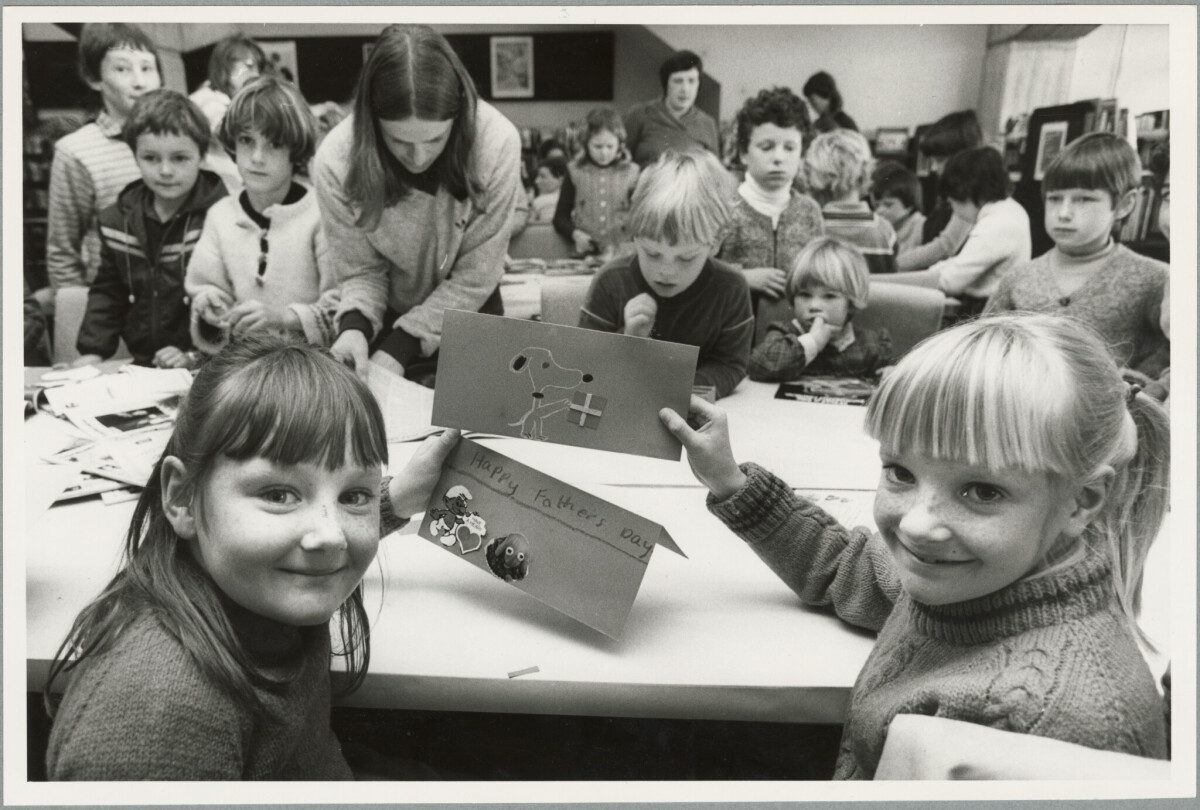 Katrina and Tracy Walsh making Father's Day cards in the Canterbury Public Library.