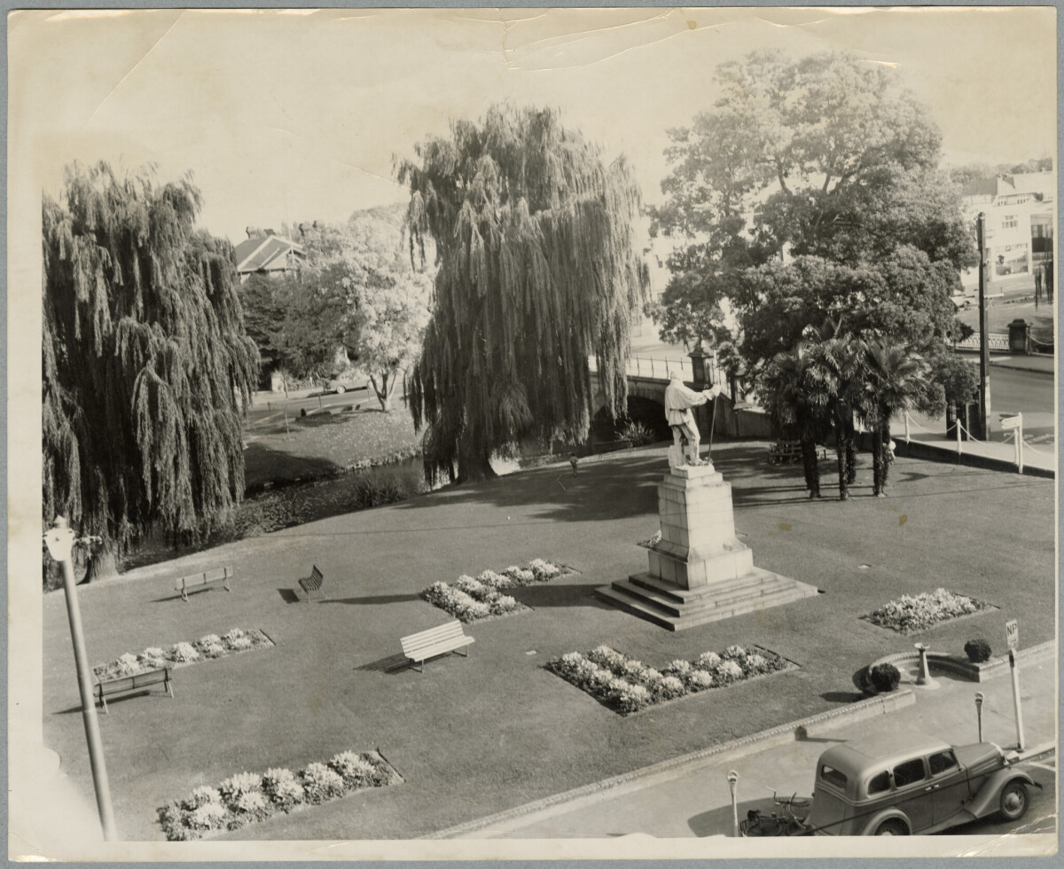 The park with the Scott statue on the corner of Worcester Street and Oxford Terrace.
