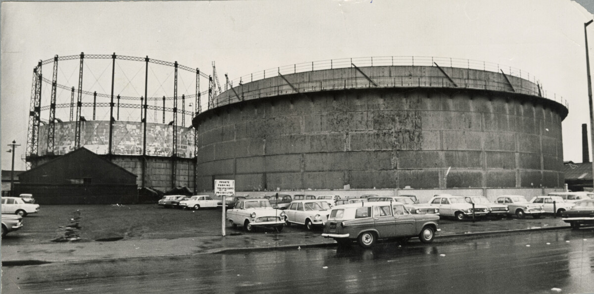 Gasholders beside Moorhouse Avenue