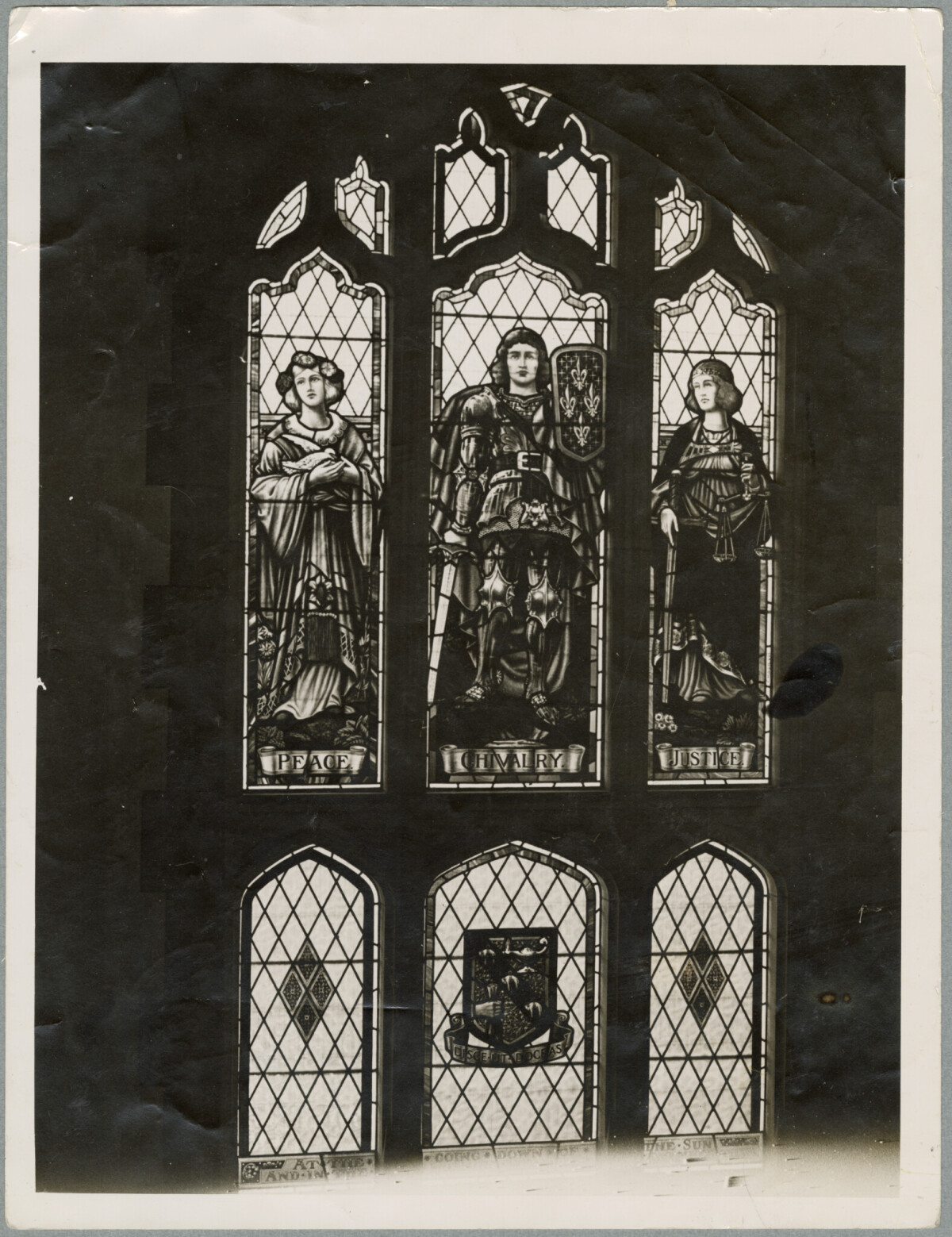 Close-up of the memorial window at the Christchurch Teachers College on the corner of Montreal Street and Peterborough Street.