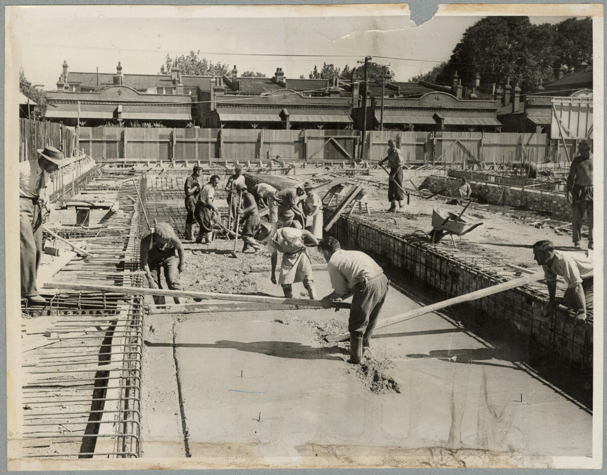 Construction of the Christchurch Star office building on Kilmore Street. Looking south.