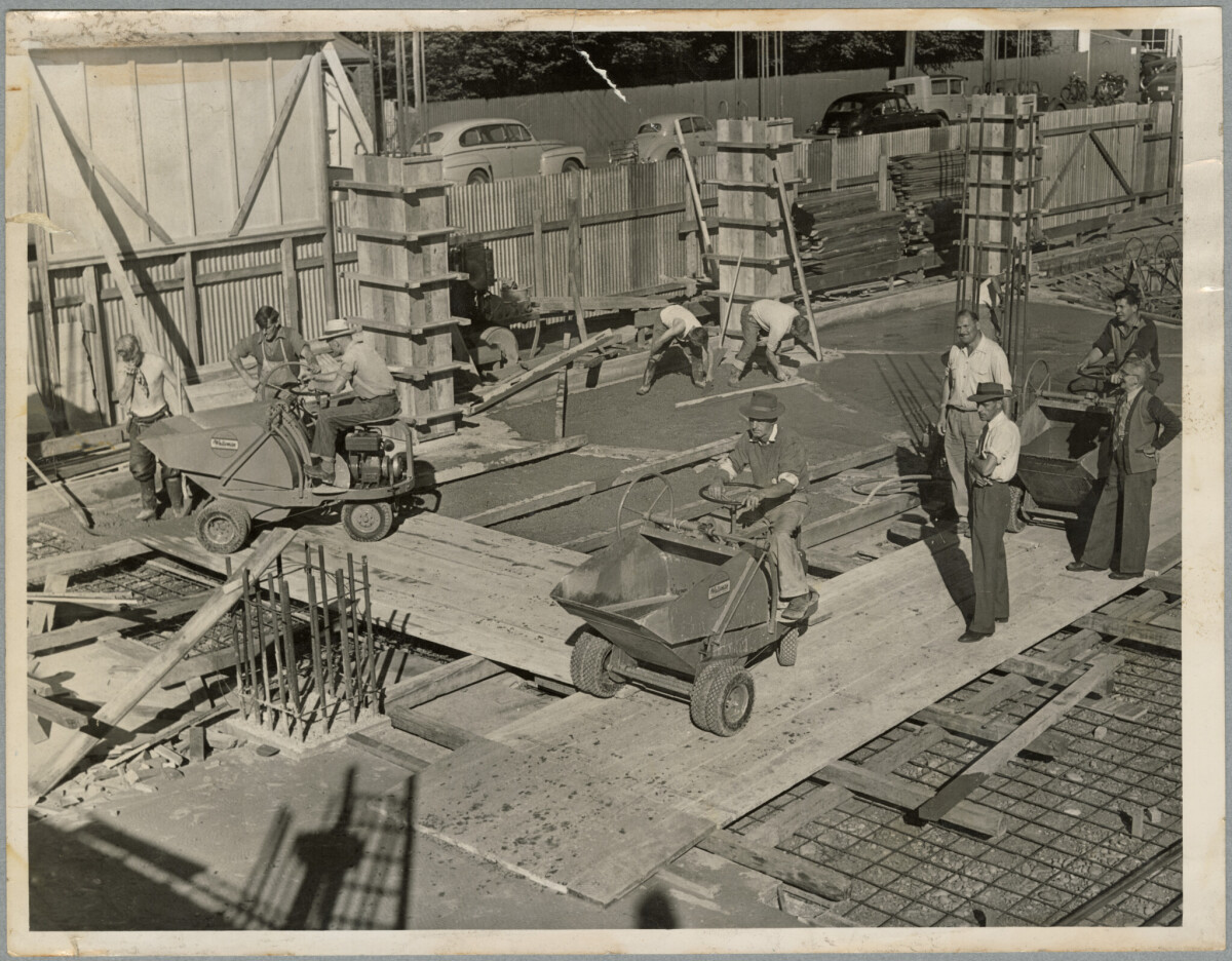Constructing the foundations of the Christchurch Star office building on Kilmore Street.