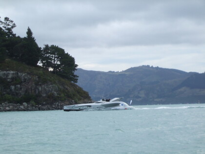 Earthrace entering Purau, 24 April 2009