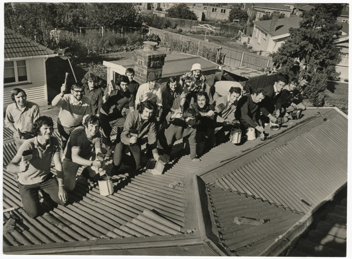 Jaycees painting the roof of John Lawn's house in Roxburgh Street, Sydenham.