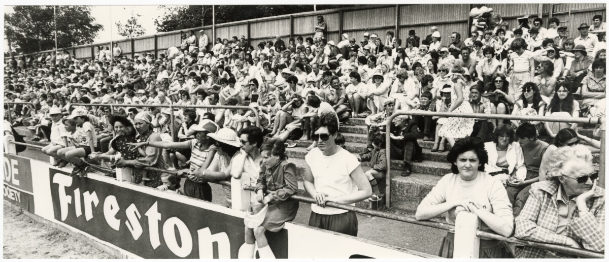 Crowds in the stands at the Canterbury Agricultural and Pastoral Association Show at Addington showgrounds.