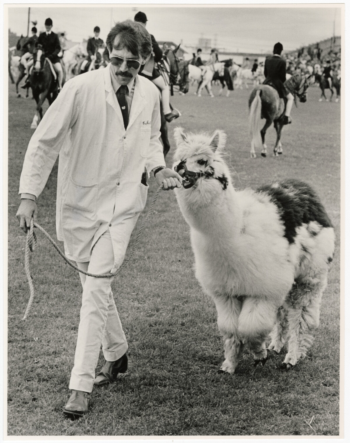Chris Buckley with an alpaca at the Canterbury Agricultural and Pastoral Show.