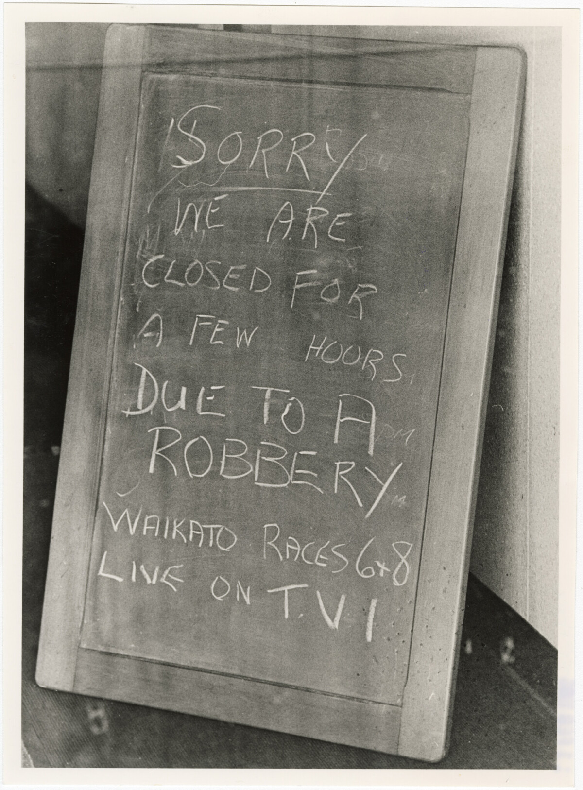 A sign outside the Lichfield Street TAB stating its closure due to a robbery.