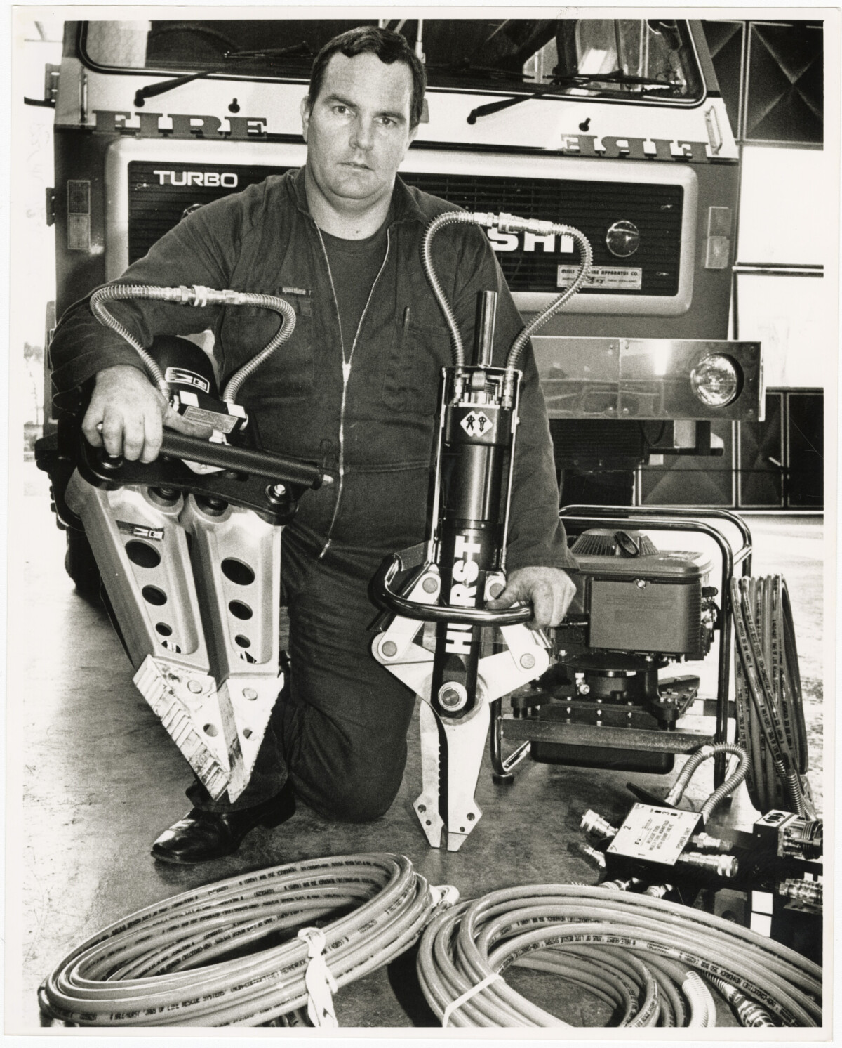 Christchurch Fire Service mechanic Peter Curd with new jaws of life cutting equipment.