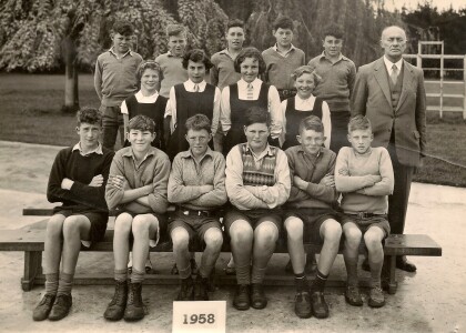 1958 photo of the Harewood School boys hockey team:-(L-R) Back ...