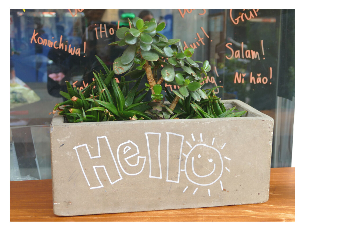 This made me fell happy and good at Rollickin Gelato. "Hello" planter and a lovely plant.