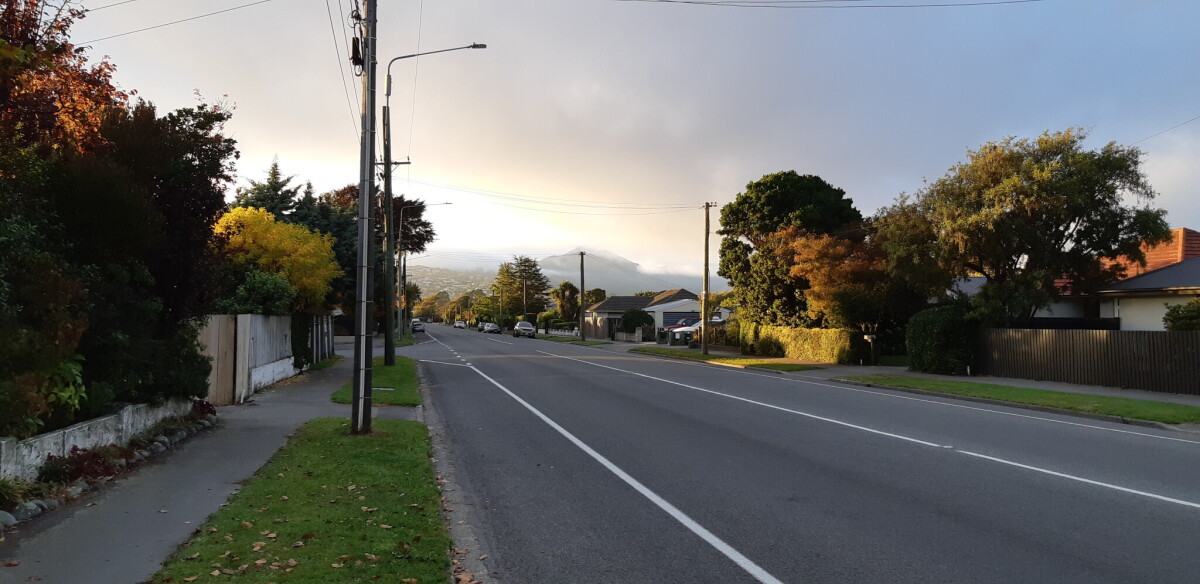 View of low cloud over the Port Hills taken from Hoon Hay Road near the intersection with Smartlea Street in Hoon Hay. Taken during a morning walk at 8.30am during the COVID-19 lockdown.