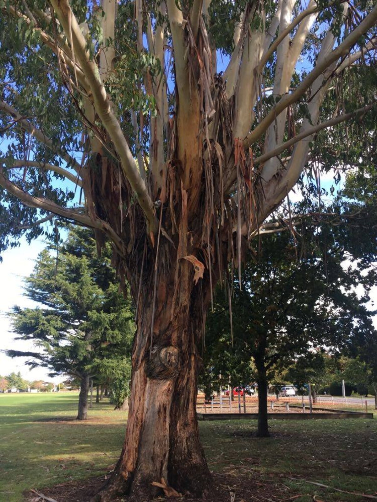 A great Eucalyptus tree in Burnside Park shredding its bark.