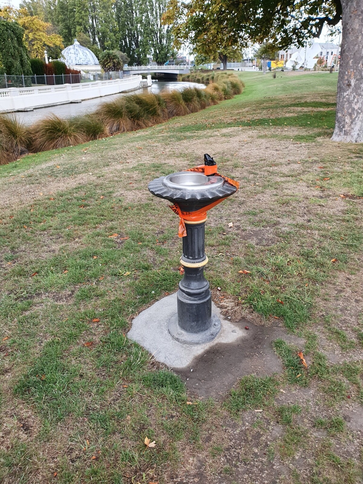 As a result of the Covid-19 pandemic, the public water fountains were taped off.