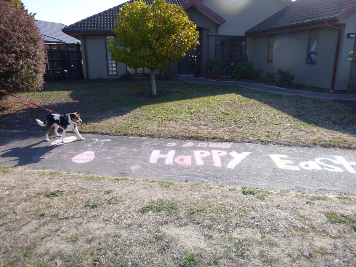 Bella the dog on her Easter walk during Covid-19 lockdown.