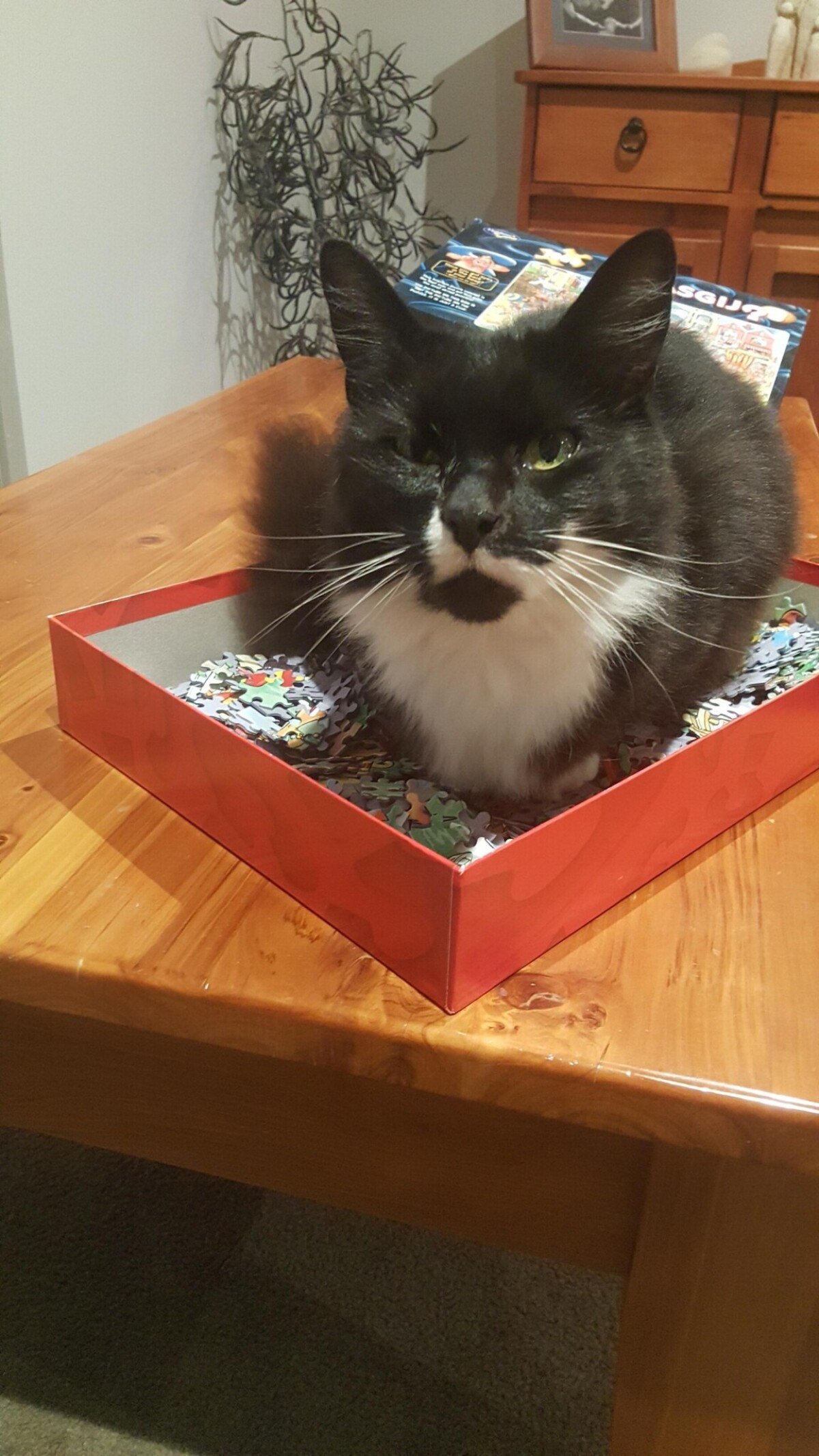Puzzles are one way that we pass time during lockdown, including our cat Bambi.