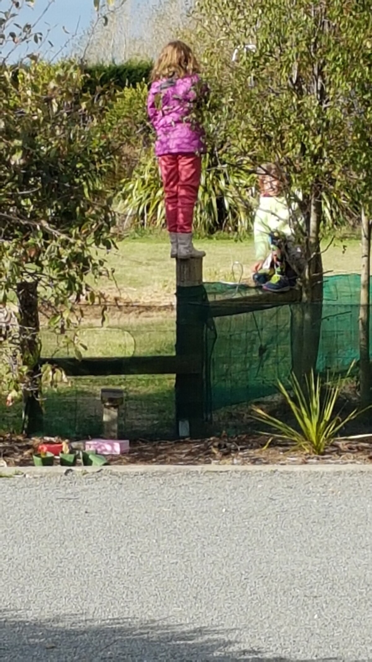 Our daughter, Zara catching up with our neighbour's granddaughter over the fence. As an only child and one who is very sociable she has really missed her friends. They chat and play like this for hours. A beautiful sunny but chilly day.